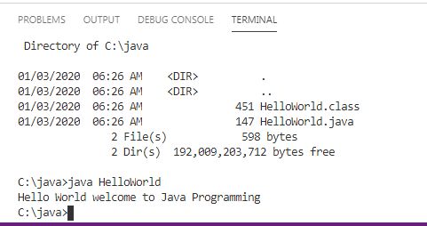 I wrote this simple program to display a hello world message on the screen using the Java programming language.